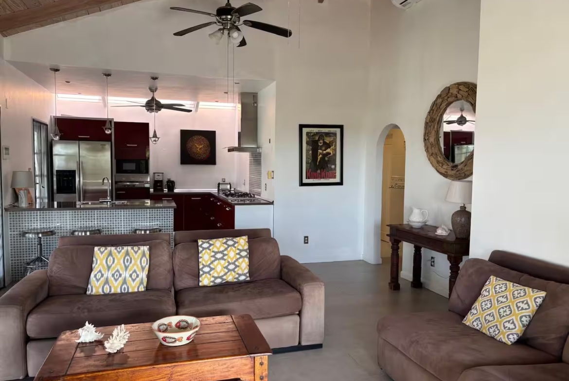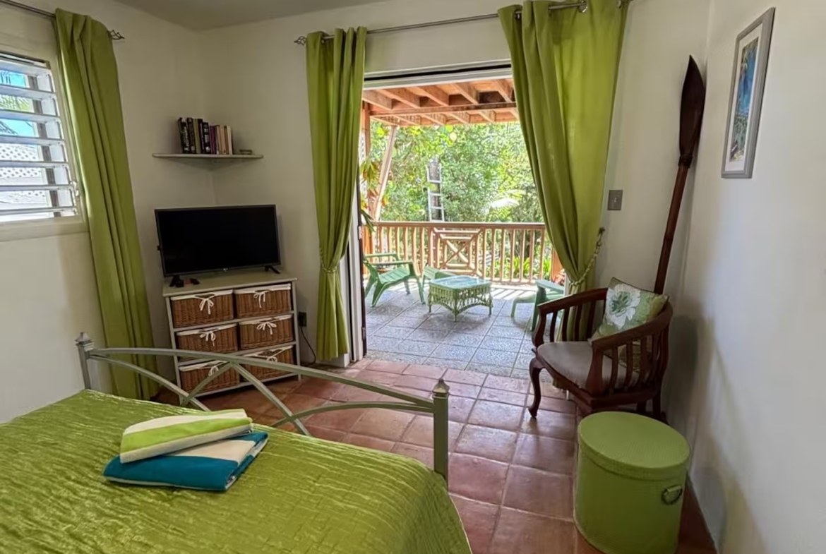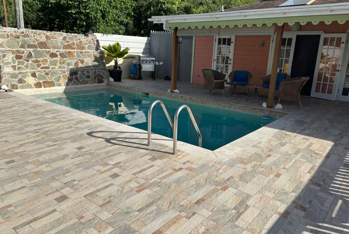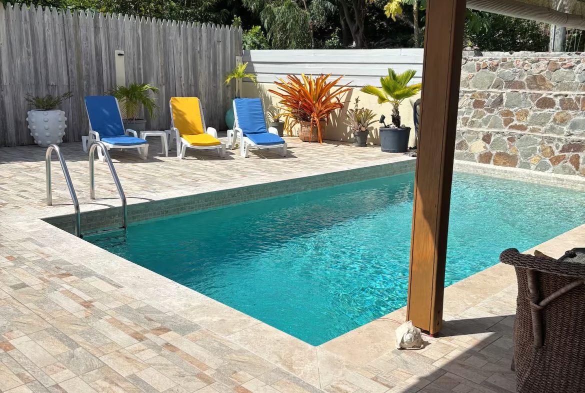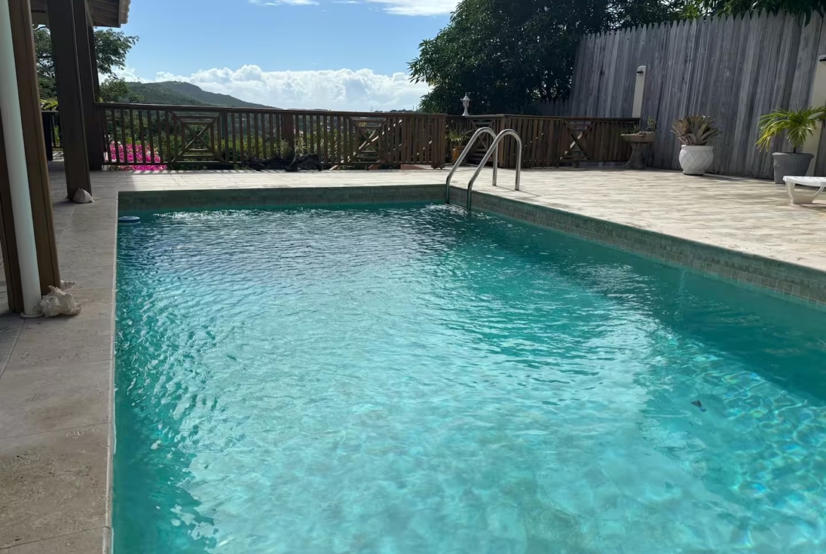Calabash is a two bedroom, two bathroom Caribbean style home with a one bedroom, one bathroom, apartment below set in beautifully cared for tropical gardens close to Cobbs Cross in Antiguas southern parish of St Paul. Falmouth Harbour, with its, restaurants, supermarkets and the World Heritage site of historic English Harbour, is only a few minutes drive away. The villas elevated position gives it beautiful sea views from the pool deck. Spend evenings relaxing on the covered patio with the lights from the superyachts in Falmouth Harbour twinkling in the distance.