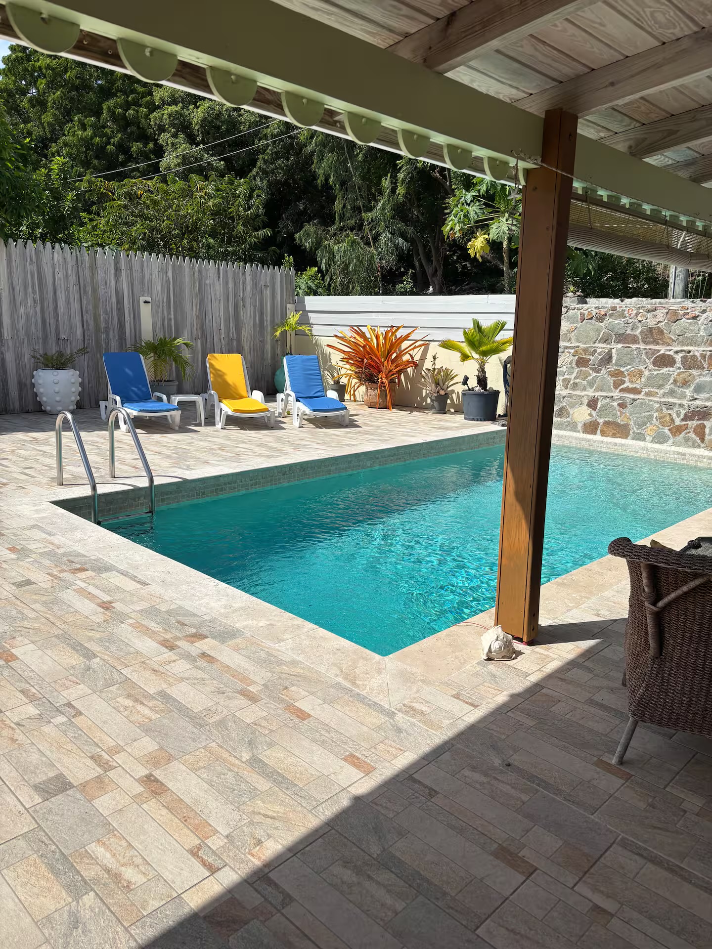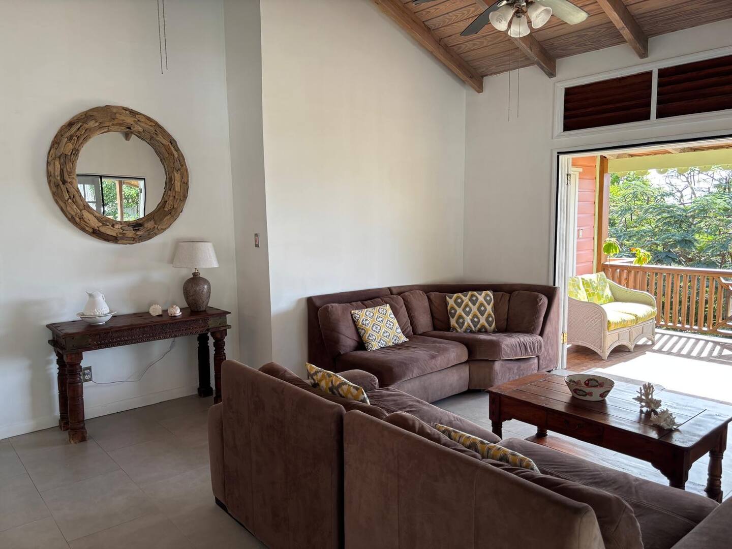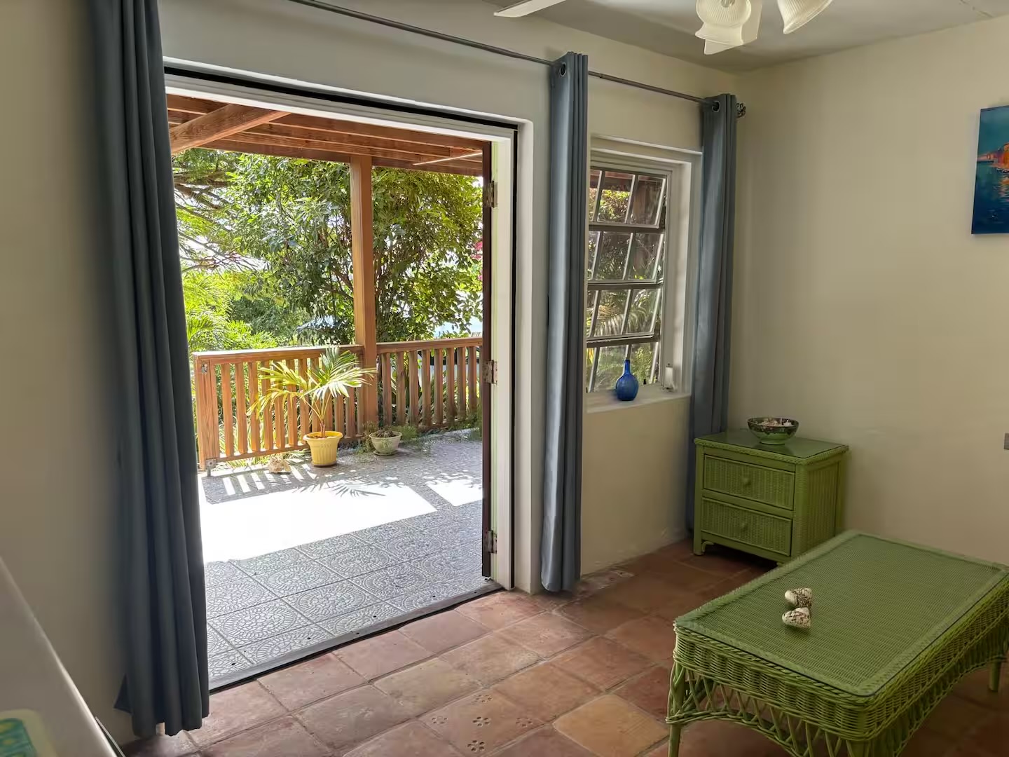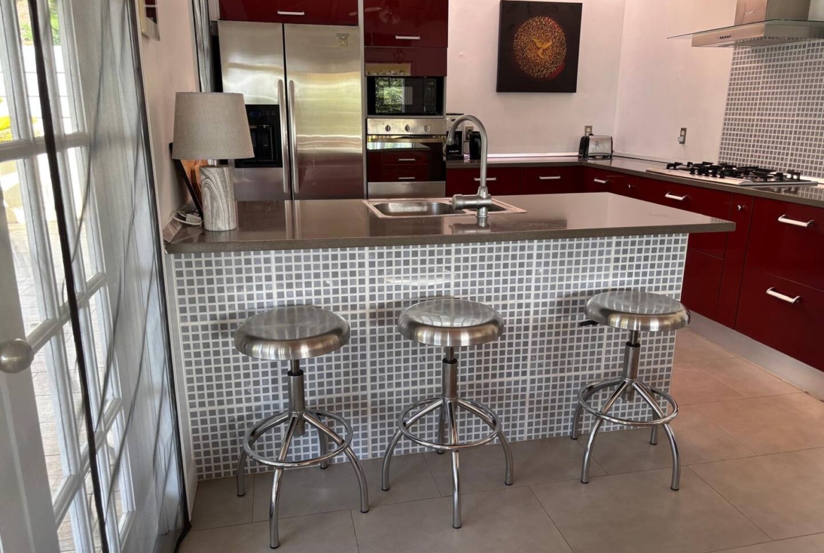 Calabash is a two bedroom, two bathroom Caribbean style home with a one bedroom, one bathroom, apartment below set in beautifully cared for tropical gardens close to Cobbs Cross in Antiguas southern parish of St Paul. Falmouth Harbour, with its, restaurants, supermarkets and the World Heritage site of historic English Harbour, is only a few minutes drive away. The villas elevated position gives it beautiful sea views from the pool deck. Spend evenings relaxing on the covered patio with the lights from the superyachts in Falmouth Harbour twinkling in the distance.