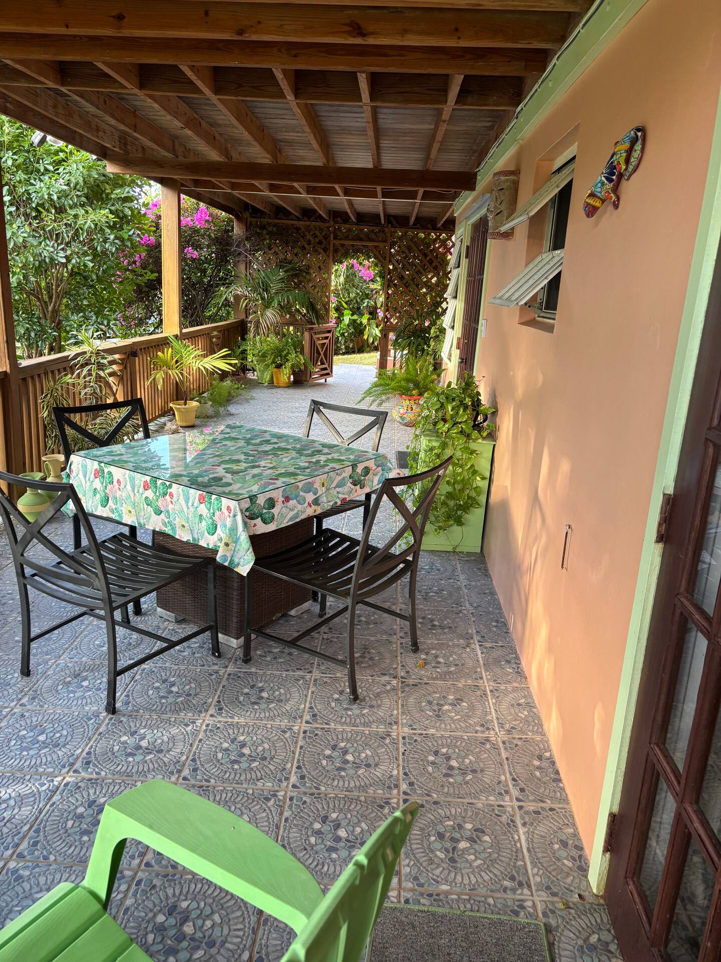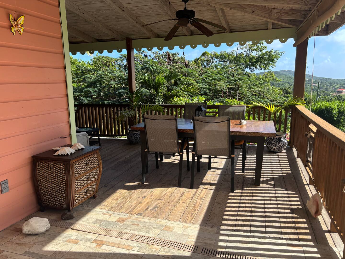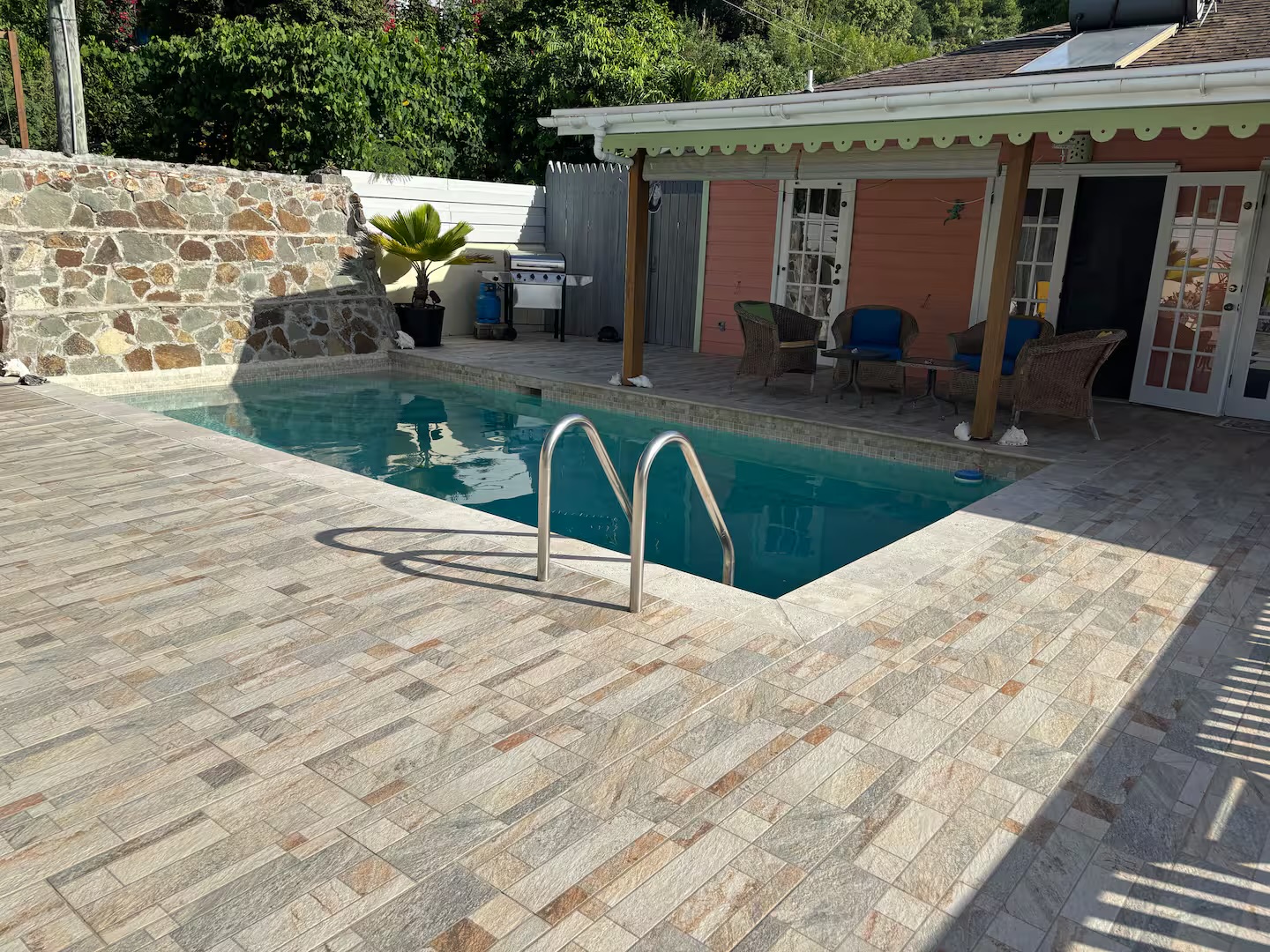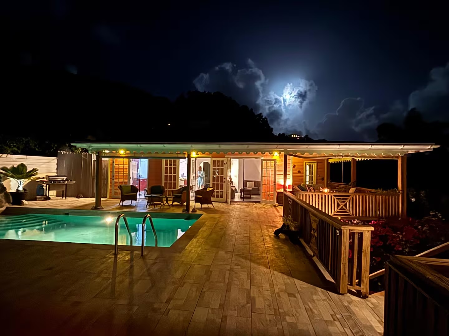 Calabash is a two bedroom, two bathroom Caribbean style home with a one bedroom, one bathroom, apartment below set in beautifully cared for tropical gardens close to Cobbs Cross in Antiguas southern parish of St Paul. Falmouth Harbour, with its, restaurants, supermarkets and the World Heritage site of historic English Harbour, is only a few minutes drive away. The villas elevated position gives it beautiful sea views from the pool deck. Spend evenings relaxing on the covered patio with the lights from the superyachts in Falmouth Harbour twinkling in the distance.