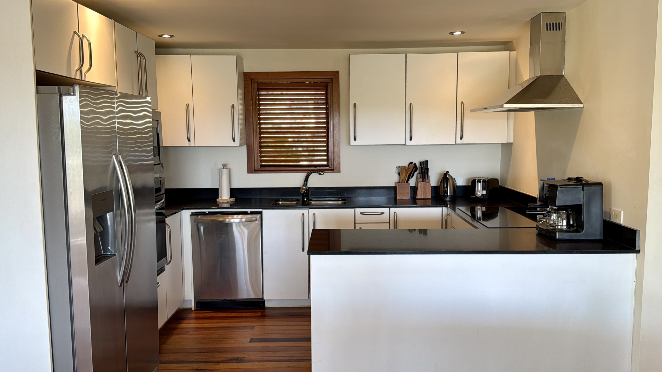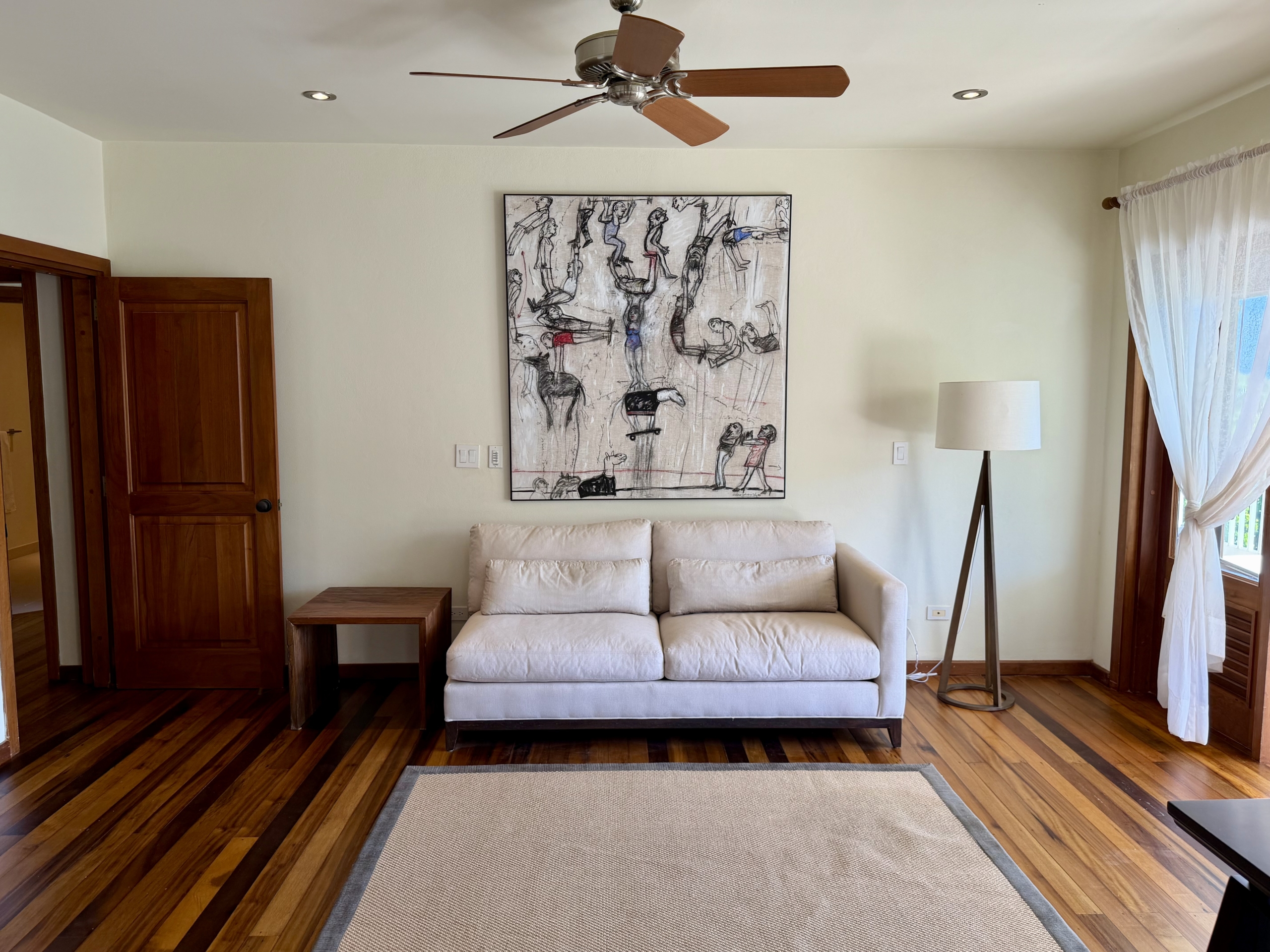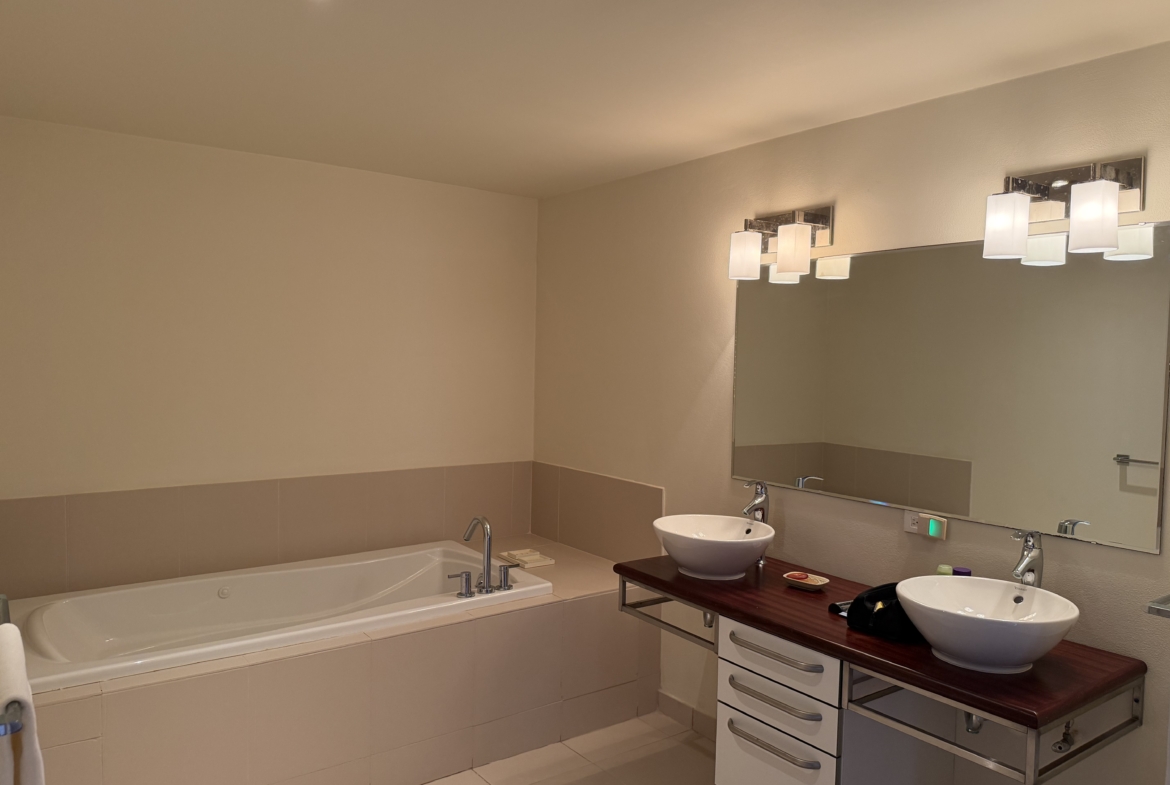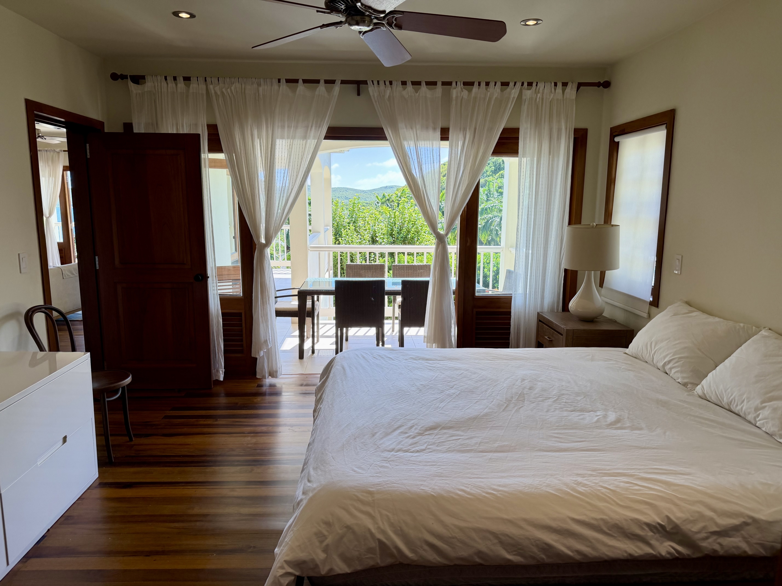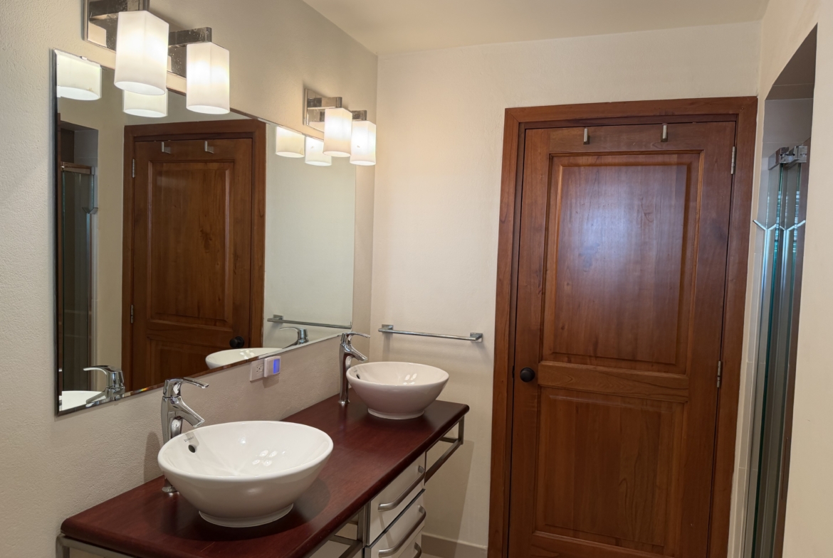 Ideally situated near the upper pool with a landscaped garden in front, the apartment provides a modern open and spacious living/dining areas and fully equipped kitchen with stainless steel appliances, as well as the expansive verandah set up for outside dining and lounging – perfect for relaxing or entertaining. Central air conditioning, purple heart floors, soaring ceilings, large closets, commodious baths, high end appliances and included Anglo-Indian style furnishings are some of the copious amenities.