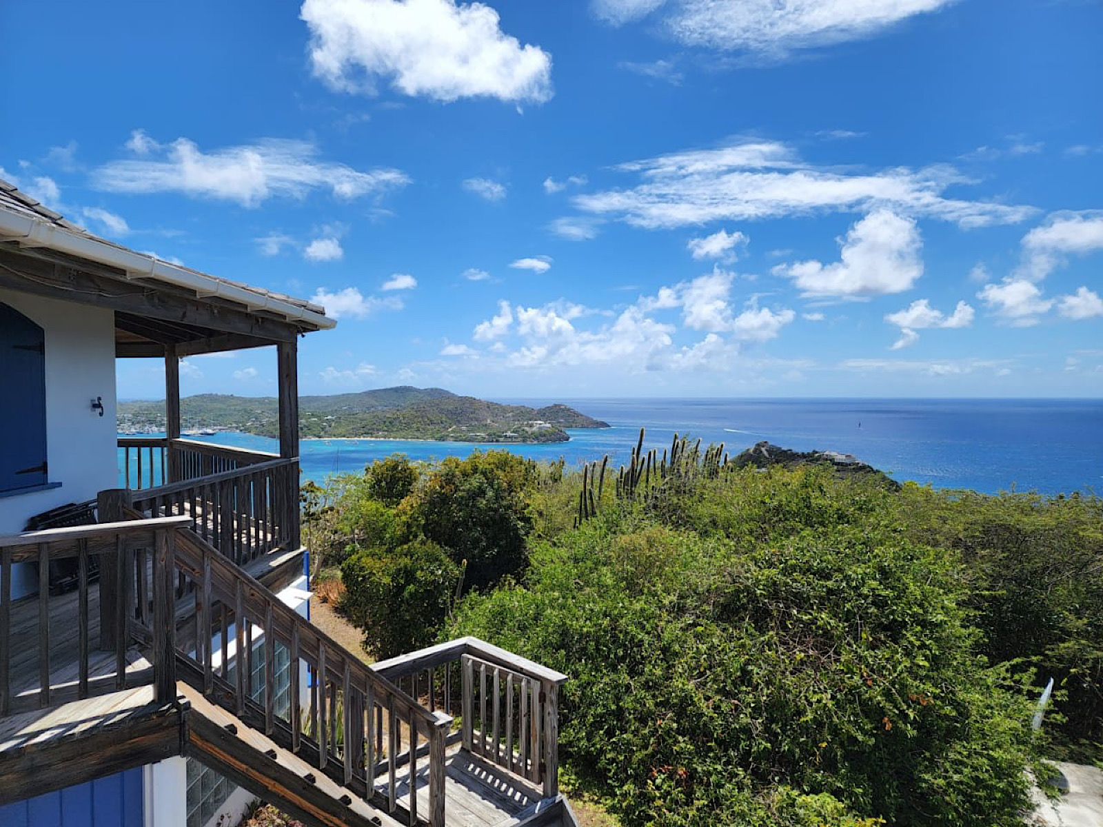 Windy Ridge is a wonderful two bedroom beautiful Caribbean style house set high on a ridge with panoramic views of the sea on three sides set in a National Park. To the East one can observe all the ever-changing view of the popular Falmouth Harbour as some of the largest and most beautiful yachts in the world come and go. To the south, Guadeloupe can be seen in the distance and to the west, the volcano of Montserrat stands tall and an uninhabited stretch of wild Atlantic coastline.
